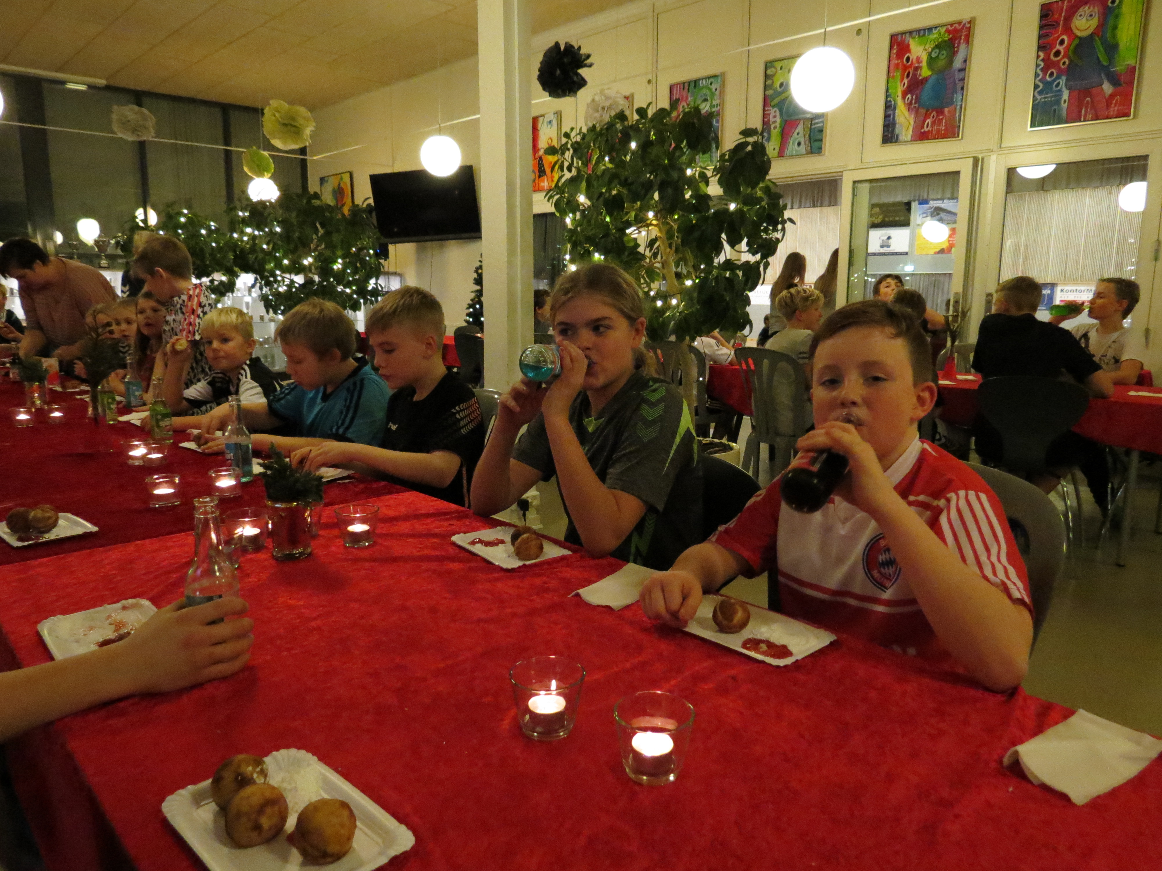 Der var musik, lys og røg i hallen, da U10, U12 og U14 holdene holdt fælles juleafslutning torsdag den 18. december fra 16.30-19.30.